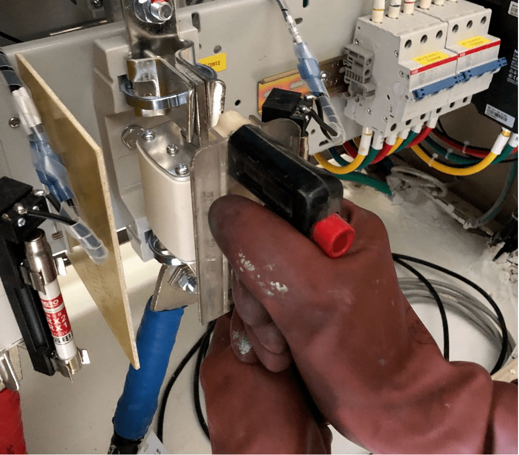 3. 取下蓄電池組保險后,在蓄電池保險的底座正極上下兩端、負極上下兩端分別套上大小合適的絕緣盒,并在絕緣盒上分別掛“禁止合閘,有人工作!”標示牌。